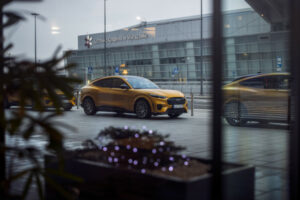 Dzięki aplikacji Ford Pass wnętrze Mustanga Mach-E można nagrzać do zadanej temperatury i na określoną godzinę także podczas ładowania akumulatora – wówczas energia potrzebna do ogrzania samochodu pochodzi z sieci, a nie z „baterii”. Bardzo ważny jest przy tym fakt, że nagrzewa się także akumulator, który od rozpoczęcia jazdy pracuje z optymalną temperaturą.