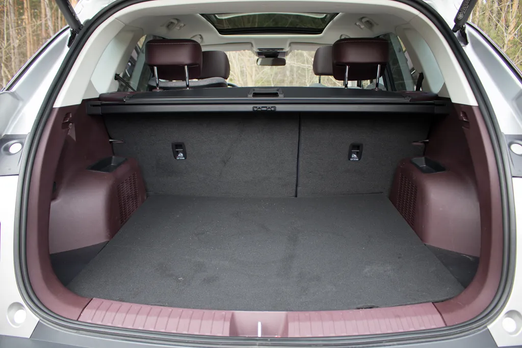 Bagażnik oferuje 560 litrów pojemności, choć można odnieść wrażenie, że producent uwzględnia w tej wartości również przestrzeń pod podłogą. W testowanym egzemplarzu znajduje się tam zbiornik LPG, co w praktyce ogranicza możliwości wykorzystania tej wnęki. Na plus należy zaliczyć elektrycznie sterowaną pokrywę bagażnika.