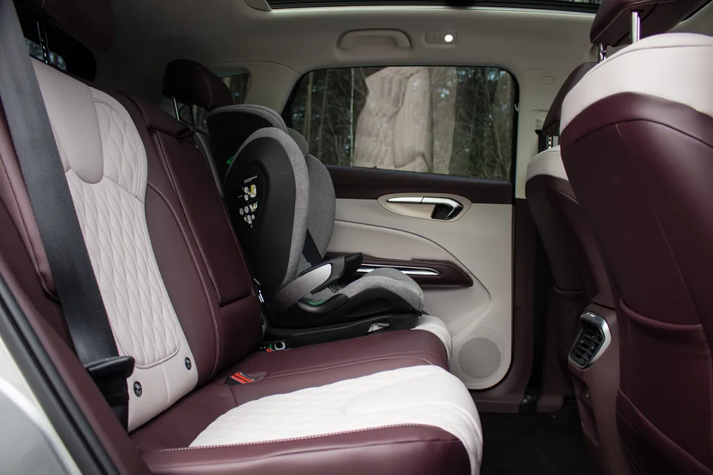 Przednie fotele są bardzo wygodne i dobrze sprawdzają się zarówno w mieście, jak i w trasie. Do dyspozycji mamy elektryczną regulację, a kierownica oferuje regulację w dwóch płaszczyznach, co pozwala łatwo dobrać odpowiednią pozycję za kierownicą. Na plus należy zaliczyć także podgrzewanie — zarówno foteli (trzystopniowe), jak i kierownicy. Jedynym realnym minusem jest brak regulacji podparcia odcinka lędźwiowego. Warto też dodać, że siedzi się tu stosunkowo wysoko, co wielu kierowcom przypadnie do gustu.