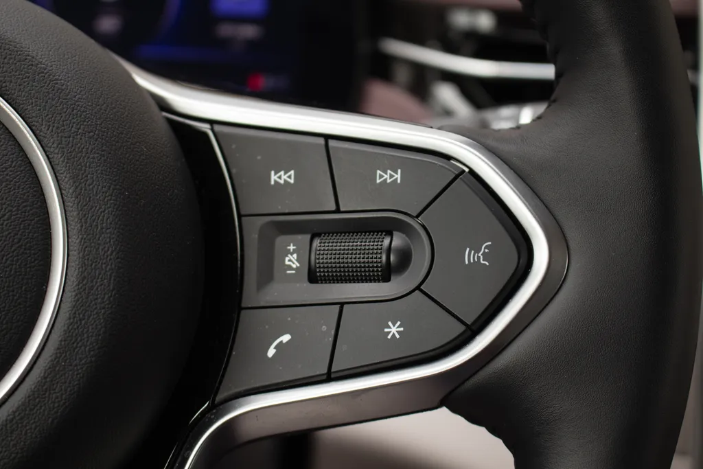 Sama kierownica dobrze leży w dłoniach i została wyposażona w zestaw przycisków oraz rolek odpowiadających za obsługę najważniejszych funkcji. Układ przypomina rozwiązania znane z modeli grupy Volkswagena i w praktyce sprawdza się bardzo dobrze. Z jej poziomu obsłużymy m.in. adaptacyjny tempomat, multimedia, zestaw głośnomówiący oraz komputer pokładowy — choć w tym ostatnim przypadku działanie bywa momentami nieintuicyjne.