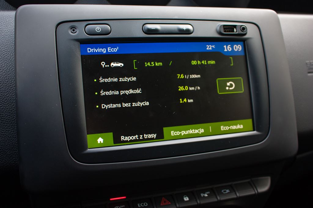 Z pewnością klienci doceniają Dustera za niezwykle prostą obsługę i to pomimo tego, że może zostać naprawdę bardzo bogato wyposażona. Wszystkie pokrętła i przyciski są wystarczająco duże i bardzo dobrze opisane, dzięki czemu nawet starsze osoby szybko połapią się w ich rozmieszczeniu i funkcjonowaniu. To samo dotyczy wyświetlacza systemu info-rozrywki, który jest prosty i intuicyjny, natomiast same negatywne odczucia są związane jedynie z samym wyświetlaczem. Jego reakcja na dotyk nie jest najlepsza, ale jeszcze gorszą wiadomością jest to, że w momencie padania na niego światła słonecznego nic na nim nie zobaczymy. Trochę to słabe. Zwłaszcza wtedy kiedy akurat korzystamy z nawigacji.