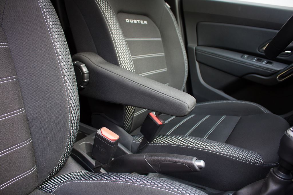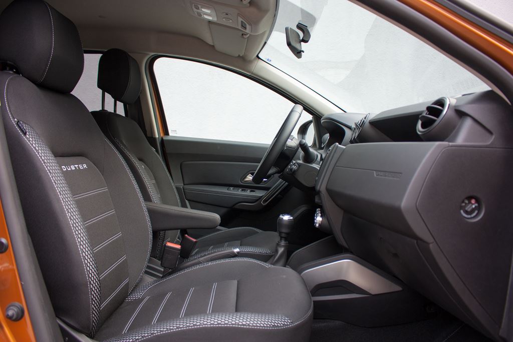 Największa zaleta wnętrza to niewątpliwie przestrzeń. Nieco gorzej jest już z samym komfortem podróżowania i to pomimo dość miękkich foteli, które jakoś specjalnie nie męczą w czasie jazdy. Mogłyby być trochę lepiej wyprofilowane, posiadać dłuższe siedziska czy lepsze podparcie boczne, ale przynajmniej mamy tutaj regulację odcinka lędźwiowego. Pozycja za kierownicą jest poprawna, chociaż naszym zdaniem regulacja kolumny kierownicy w poziomie jest trochę zbyt mała. Trzeba się pogodzić z pewnymi oszczędnościami i iść na kompromisy, ale na to kupując Dustera trzeba się po prostu przygotować. Podobnie jest z uchwytami na kubki pomiędzy fotelami, jednak dostęp do nich z przednich foteli jest bardzo niewygodny i jeśli ktokolwiek miałyby z niego korzystać to byliby to pasażerowie zasiadający z tyłu. Dodatkowo jeśli włożycie w te uchwyty jakiś większy kubek czy butelkę to wówczas będzie on nachodzić na wąski podłokietnik kierowcy.