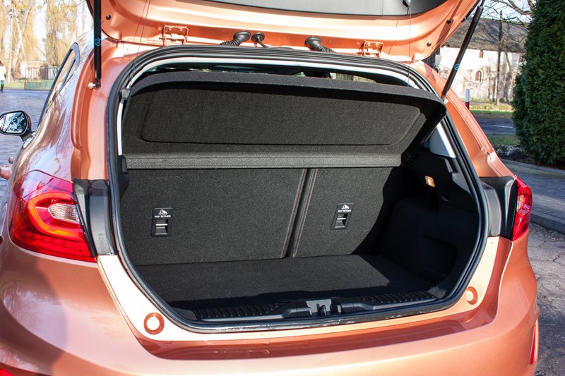Przestrzeń bagażowa również nie powinna nikogo rozczarować. Fiesta nie jest pod tym względem liderem, ale 292 litry to solidny wynik i do codziennego użytkowania w zupełności wystarcza. Po złożeniu siedzeń można powiększyć ją do 1093 litrów. Dużą zaletą jest szeroki otwór załadunkowy, który ułatwia zapakowanie większych przedmiotów.