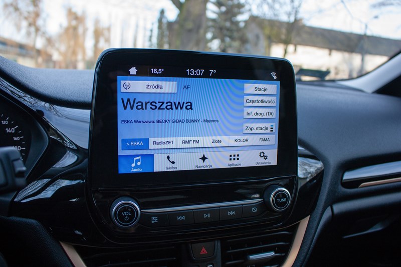 Testowany przez nas egzemplarz został wyposażony w opcjonalny system nagłośnienia B&O Play. Nawet w najwyższej wersji wyposażenia wymaga on dopłaty 1.600 złotych, ale uwierzcie nam na słowo, że warto. Dziewięć głośników, subwoofer i moc 675 watów naprawdę robią robotę. Tym bardziej, że został on specjalnie dostrojony do kabiny Fiesty, więc możecie liczyć na bardzo przyjemne doznania. Jesteśmy pewni, że żaden z konkurentów nie może się obecnie do tego zbliżyć.