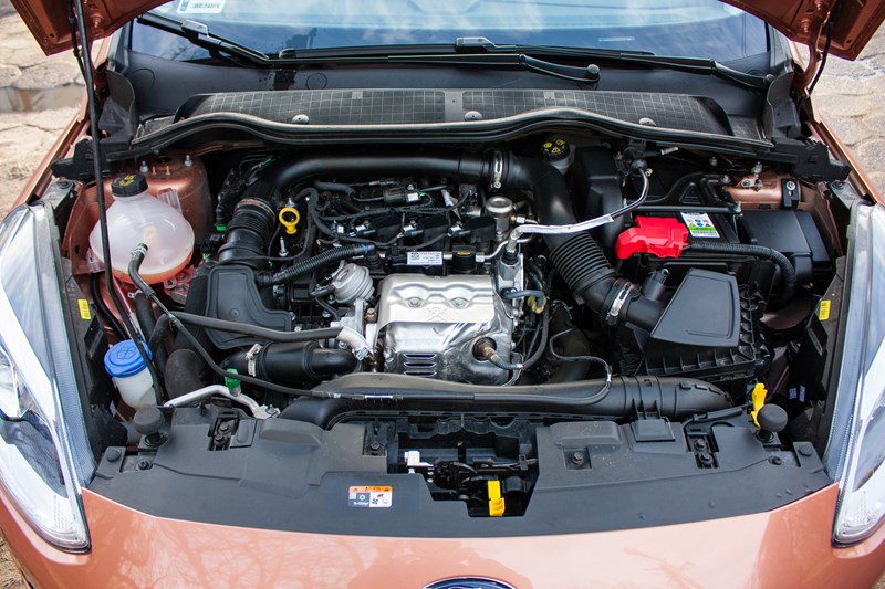 Pod maską znajdziemy rzecz jasna wielokrotnie nagradzany trzycylindrowy silnik benzynowy 1.0 EcoBoost, który dostępny jest w trzech wariantach – 100 KM (170 Nm), 125 KM (170 Nm) oraz 140 KM (180 Nm). W nasze ręce trafiła pośrednia wersja, która zapewnia dobre osiągi, korzystne zużycie paliwa i oferowana jest z najbogatszym wyposażeniem.