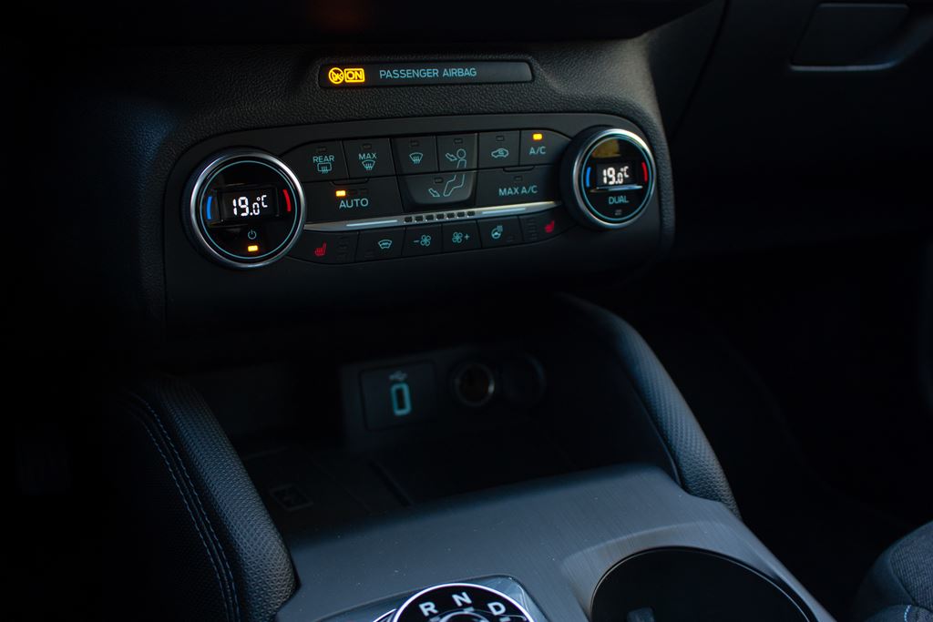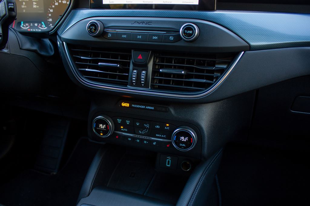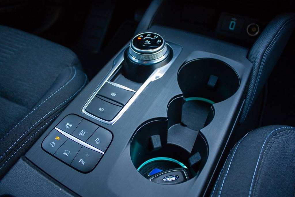 Z pewnością pewne kontrowersje budzi lewarek zmiany biegów. Może pokrętło zmiany biegów samo w sobie nie jest czymś złym, ale mamy wrażenie, że w przypadku Forda nikt nie zastanowił się nad funkcjonalnością. Możemy zrozumieć, że zajmuje to mniej miejsca. Możemy przyzwyczaić się do tego, że trzeba nim trochę pokręcić, żeby znaleźć odpowiednie przełożenie, co może nie jest najbardziej ergonomiczne, ale można przywyknąć. Kompletnie nie rozumiemy, dlaczego ktoś pośrodku pokrętła umieścił przycisk do manualnej zmiany biegów, bo logika nakazywałaby, aby był tam przycisk „P”. Osobiście wolelibyśmy normalny lewarek zmiany biegów, ale tragedii nie ma i wszystko jest kwestią przyzwyczajenia.