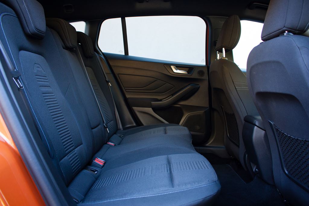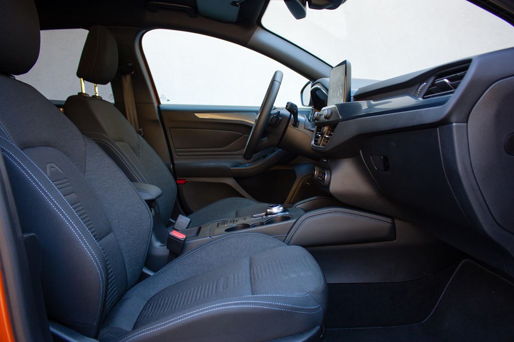 Najszybciej rzucającą się w oczy zmianą w porównaniu do normalnego Focusa jest tapicerka materiałowa Active, która prezentuje się całkiem ładnie i sprawia wrażenie odpornej na zabrudzenia. Trochę więcej zastrzeżeń mamy co do sportowych foteli, które mają niewiele wspólnego ze sportem. Zgodzimy się z tym, że są wygodne i mają odpowiednie rozmiary, ale podparcie boczne w zakrętach jest symboliczne, więc jeśli zamierzacie ostro pokonywać zakręty to musicie się tutaj przygotować na to, że będziecie przesuwać się po całym fotelu. Chyba nie do końca o to chodzi w sportowych fotelach, ale pewnie 99% kierowców doceni ich wyprofilowanie i odpowiednią twardość. Na tylnej kanapie jest wystarczająco dużo miejsca a pasażerowie z pewnością docenią komfortową kanapę.