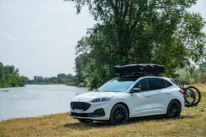 Ford Kuga w odmianie hybrydowej plug-in to idealne auto nie tylko dla tych, którzy chcą częściej korzystać z napędu elektrycznego w trakcie jazdy. Samochód idealnie sprawdza się również w roli auta wyprawowego, a to wszystko dzięki namiotowi dachowemu oraz bagażnikowi rowerowemu firmy Thule.