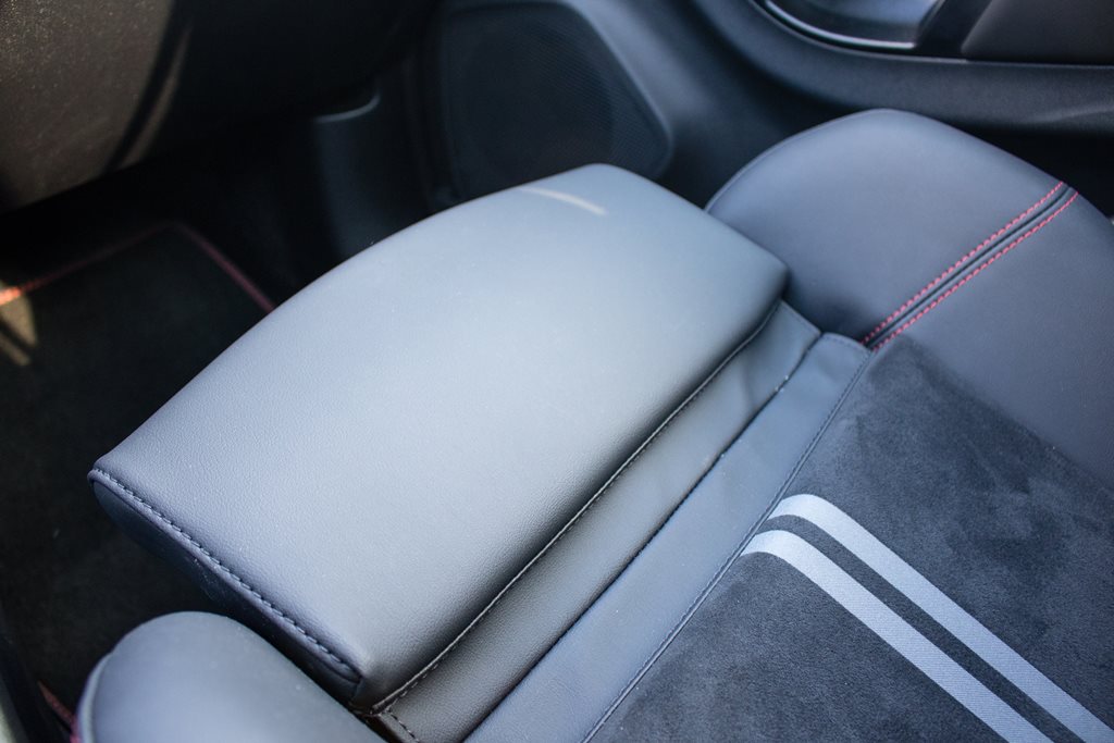 Ford Puma ST X nie rozczarowuje pod względem schowków i półeczek. Z przodu mamy dużą wnękę z ładowarką indukcyjną, dwa uchwyty na napoje oraz niewielki schowek w podłokietniku. Na tunelu środkowym znajdziemy jeszcze port USB typu A, gniazdo 12V a w podłokietniku port USB typu C. Szkoda tylko, że nie pomyślano o tym, aby pasażerowie na tylnej kanapie mogli gdzieś podłączyć swoje urządzenia.