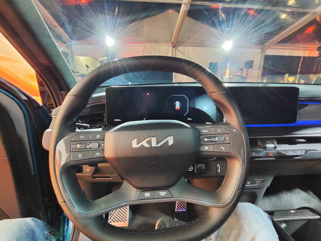 Przechodząc na chwilę do wnętrza EV9 to jest ono niesamowicie przestronne, pięknie zaprojektowane i bardzo dobrze wykończone. Kia chwali się tym, że wykorzystuje wiele materiałów pochodzących z recyklingu. Przykładowo dywaniki są wykonane z przetworzonego politereftalanu etylenu oraz z sieci rybackich. Lakierowane przełączniki i detale są pokryte farbą biologiczną a elementy wykończenia farbą która nie zawiera BTX. Kia naprawdę na poważnie podchodzi do stosowania zrównoważonych materiałów.