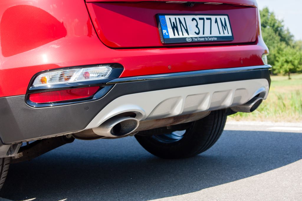 Elegancki i nowoczesny charakter podkreślają liczne dodatki. Mamy tutaj chromowane listwy, kontrastujący z lakierem nadwozia czarny błyszczący plastik, srebrny plastik oraz czarne, matowe listwy ochraniające nadwozie. W końcu to SUV, więc nie mogło tego zabraknąć. Testowany egzemplarz został pokryty pięknym lakierem Infra Red i stał na 19-calowych obręczach kół.