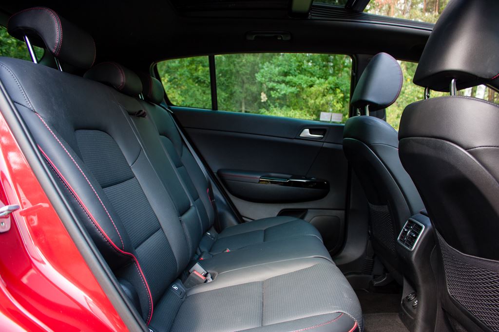 Niewątpliwie jedną z największych zalet Kia Sportage jest przestronne wnętrze. Przywykliśmy do tego, że w nowoczesnych samochodach ilość miejsca z przodu praktycznie zawsze jest wystarczająca. Tutaj mamy go naprawdę sporo, ale ważniejsze jest to, że w drugim rzędzie tej przestrzeni jest zaskakująco dużo. Może nie dla trzech dorosłych osób, bo trzeba pamiętać o tym, że Sportage to tylko kompaktowy SUV, ale jeśli chodzi o miejsce na nogi i nad głowami to jest go aż nadto. I to pomimo obecności dachu panoramicznego, który zawsze zabiera trochę miejsca. Warto podkreślić, że tylna kanapa ma regulowany kąt pochylenia, więc nawet dalsza podróż nie stanowi tutaj żadnego problemu. A co z przednimi fotelami? Zostały dobrze wyprofilowane, mają odpowiednią twardość i szeroki zakres regulacji, dzięki czemu znalezienie dogodnej pozycji do jazdy jest bardzo proste. Wysoka pozycja za kierownicą, duże lusterka i spore szyby zapewniają doskonałą widoczność.