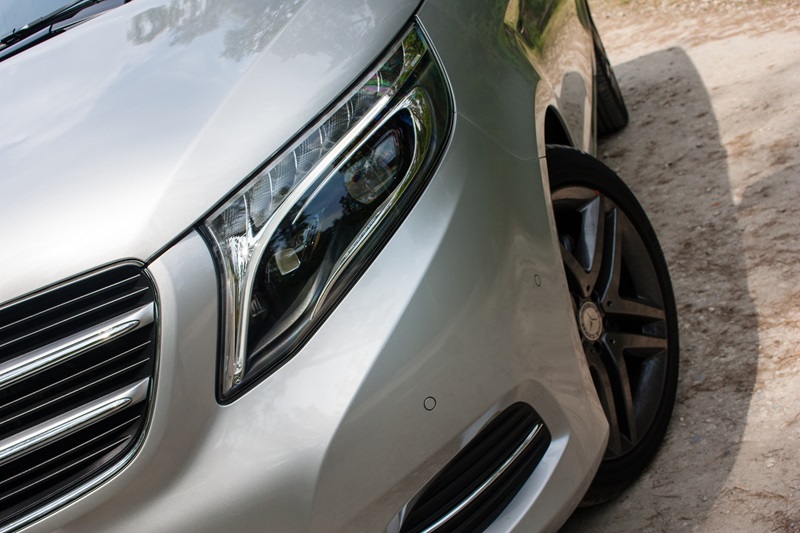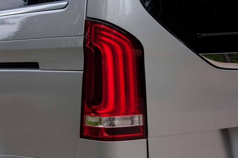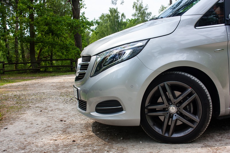 Dopiero stojąc z boku można poczuć z jak wielkim samochodem mamy do czynienia – 1.88 m wysokości i 5.14 m długości (Kompakt – 4895 mm, Ekstra Długi – 5370 mm). Na żywo robi to spore wrażenie. Ekskluzywnego charakteru nadają piękne 19-calowe pięcioramienne felgi, chromowane elementy oraz delikatne przetłoczenia, dzięki którym klasa V wygląda atrakcyjnie.