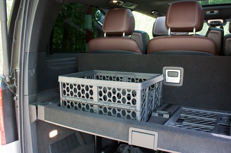 Masywną tylną klapę Easy-Pack można elektrycznie otwierać i zamykać oraz zatrzymać w dowolnym położeniu. W standardowym ustawieniu pojemność bagażnika wynosi 1030 litrów, jednak dzięki możliwości przesunięcia lub wyjęcia foteli tę przestrzeń można jeszcze zwiększyć. W bagażniku znajdziemy też zamykaną półkę w której znajdują się złożone kontenerki na różne drobiazgi. Warto zaznaczyć, że półka jest bardzo solidna dlatego bez żadnych obaw można położyć na niej ciężkie przedmioty.