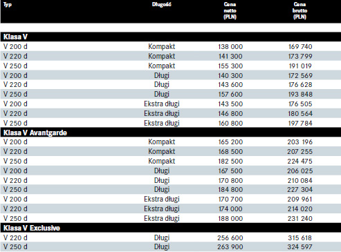 Chociaż wyglądem klasie V bliżej do modelu Vito to pod względem komfortu podróżowania zdecydowanie bliżej mu do luksusowych limuzyn. Mercedes V250 ma wszystko, aby pełnić rolę samochodu reprezentacyjnego. Takiego którym przewieziemy biznesowych kontrahentów.