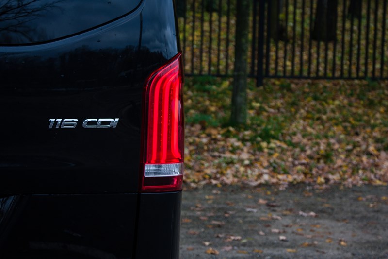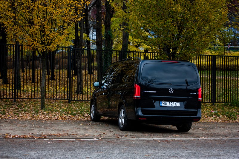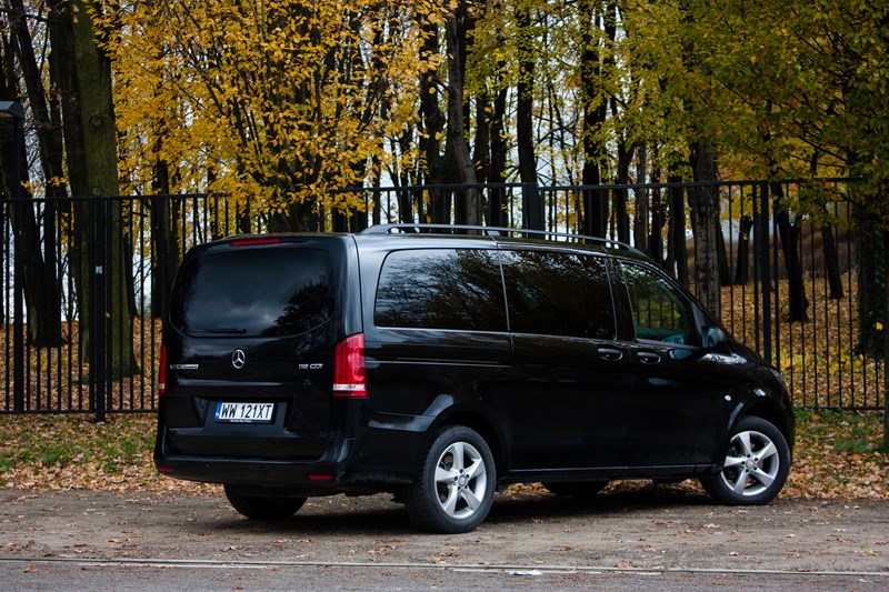 Zresztą kupując Vito trzeba się przygotować na to, że za każdy dodatek „uszlachetniający” samochód będziemy musieli słono zapłacić. Relingi dachowe wyceniono na 1.275 złotych, inteligentny system oświetlenia ILS LED na 5.336 złotych (warto do niego dopłacić) a drzwi przesuwne po lewej stronie na 2.477 złotych. Siedemnastocalowe obręcze ze stopów lekkich na których stał nasz egzemplarz wyceniono na 4.030 złotych. Za lusterka zewnętrzne składane elektrycznie zapłacimy 831 złotych natomiast za chromowaną osłonę chłodnicy 421 złotych. I to w najwyższej wersji wyposażenia! Jeszcze ciekawsze jest to, że dopiero w najbogatszej odmianie można w standardzie dostać zderzaki lakierowane w kolorze nadwozia. Dopiero zagłębiając się w konfigurator można zauważyć, że Vito ma więcej wspólnego ze Sprinterem niż klasą V.