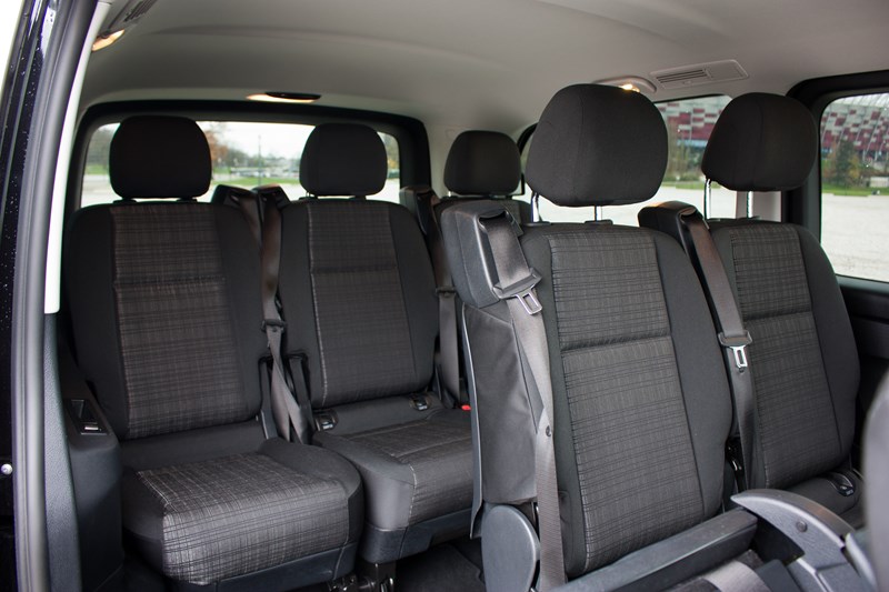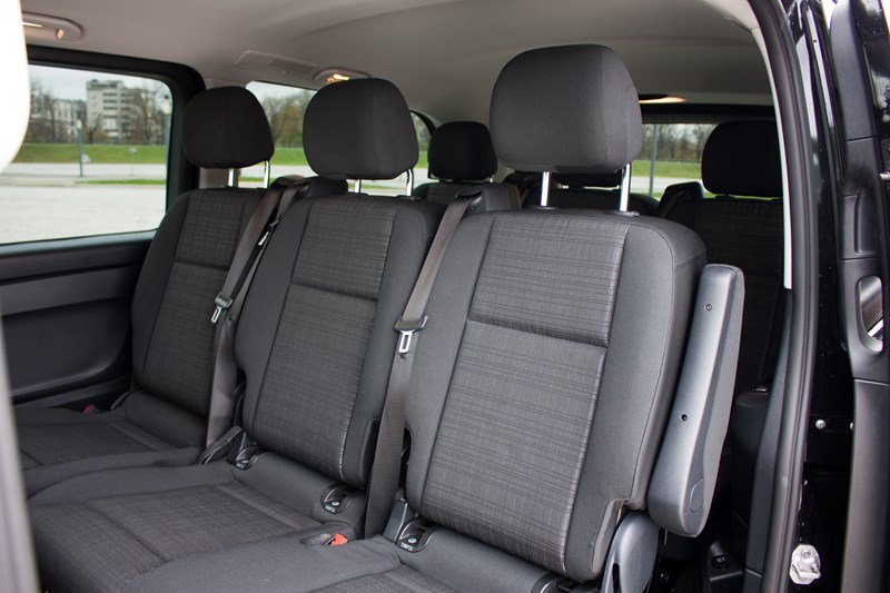 W drugim i trzecim rzędzie zamontowano komfortowe trzyosobowe kanapy z uchylnym fotelem, które świetnie sprawdzą się w czasie dalekich podróży. Pasażerowie z pewnością docenią ogromną ilość miejsca oraz wysoki komfort podróżowania, chociaż osoby zasiadające na środkowych miejscach mogą mieć trochę mało miejsca na łokcie. Otwierające się daleko boczne drzwi przesuwne sprawiają, że dostęp do trzeciego rzędu jest wygodny i nie trzeba się specjalnie gimnastykować, aby zająć w nim miejsce.