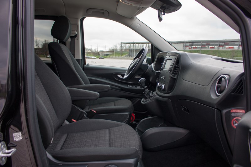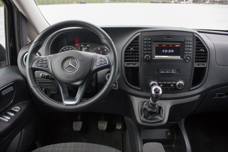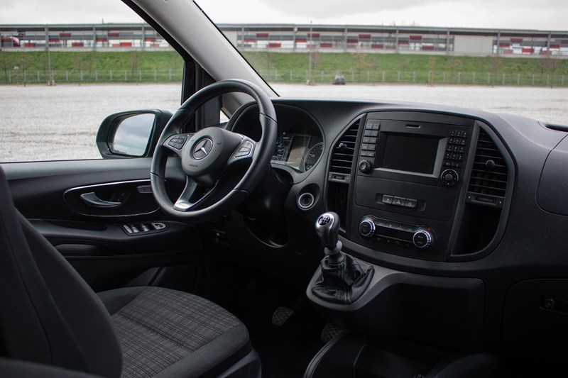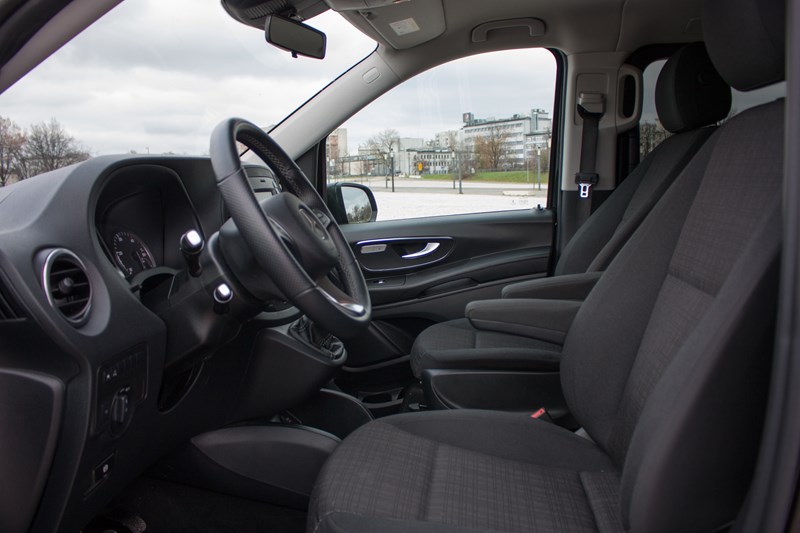 Zajmując miejsce we wnętrzu Mercedesa Vito natychmiast można poczuć jego użytkowy rodowód. Do samego rozmieszenia elementów nie mamy absolutnie żadnych zastrzeżeń. Nie brakuje tutaj wnęk, półeczek czy schowków, które ułatwiają codzienne użytkowanie samochodu. Wszystko jest bardzo praktyczne i ergonomiczne, natomiast plastikowe elementy zostały właściwie spasowane, są trwałe i łatwe do utrzymania w czystości. Walory użytkowe wygrywają tutaj z „odczuciami” klasy premium.