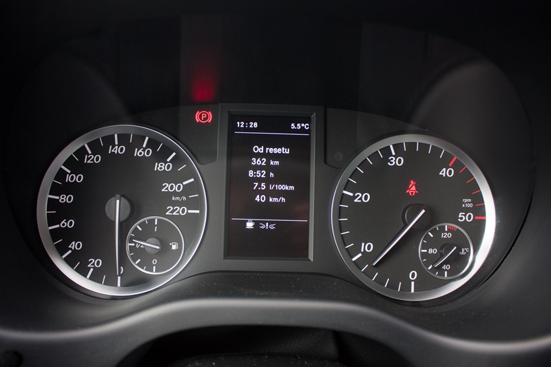 Nie oznacza to, że Vito to tylko samochód użytkowy i nie może się niczym ciekawym pochwalić. Po prostu cały czas mamy w pamięci nasz test Mercedesa klasy V, który robi niesamowite wrażenie. W przypadku Vito odrobinę „luksusu” wprowadza skórzana kierownica oraz zestaw analogowych zegarów, który jest bardzo przejrzysty i dostarcza kierowcy mnóstwo informacji.