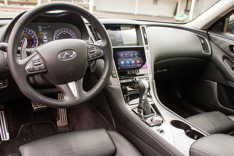 Jeśli chodzi o miejsce w środku Q50 to jest go naprawdę sporo, a w połączeniu ze świetnie zestrojonym zawieszeniem i najwyżej jakości materiałami, podróżowanie jest wyjątkowo komfortowe. Przestronne wnętrze nie zostało uzyskane kosztem zmniejszenia bagażnika, którego pojemność oszacowano na 500 litrów, a w wersji hybrydowej na 400 litrów.