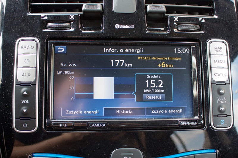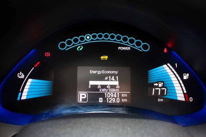 Testowany przez nas egzemplarz został wyposażony w akumulatory litowo-jonowe o zwiększonej pojemności wynoszącej 30 kWh, czyli o 6 kWh więcej niż w przypadku standardowych. Według Nissana umożliwia to przejechanie nawet 250 kilometrów, jednak wymaga to mnóstwa wyrzeczeń i ma niewiele wspólnego z normalną jazdą. Zgodnie z danymi technicznymi średnie zużycie energii wynosi 15 kWh/100 km a to oznacza, że maksymalny zasięg to tylko 200 kilometrów.