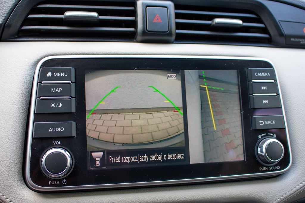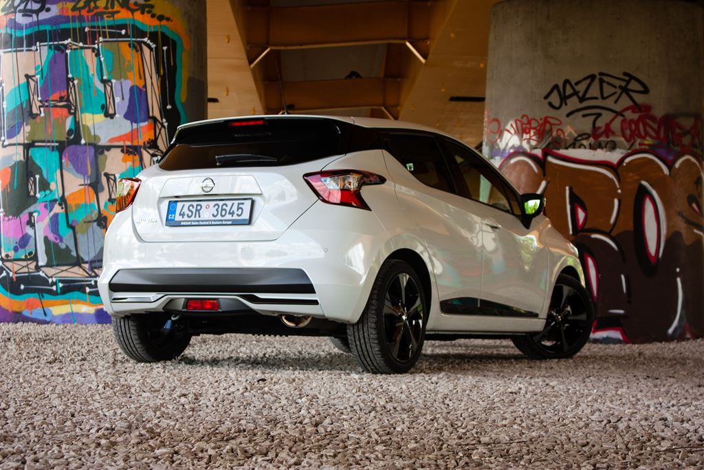 Już podczas wcześniejszych spotkań Nissan Micra zrobił na nas bardzo dobre wrażenie. Stylistyka piątej generacji japońskiego mieszczucha zasługuje na słowa uznania i bez najmniejszych skrupułów może rywalizować o miano najładniejszego miejskiego autka. I to nawet w takim pospolitym białym lakierze, który dzięki czarnym akcentom prezentuje się atrakcyjnie i nowocześnie. Za czarny pakiet trzeba dopłacić 1 600 złotych, natomiast ten zawierający czarne felgi kosztuje 2 200 złotych.