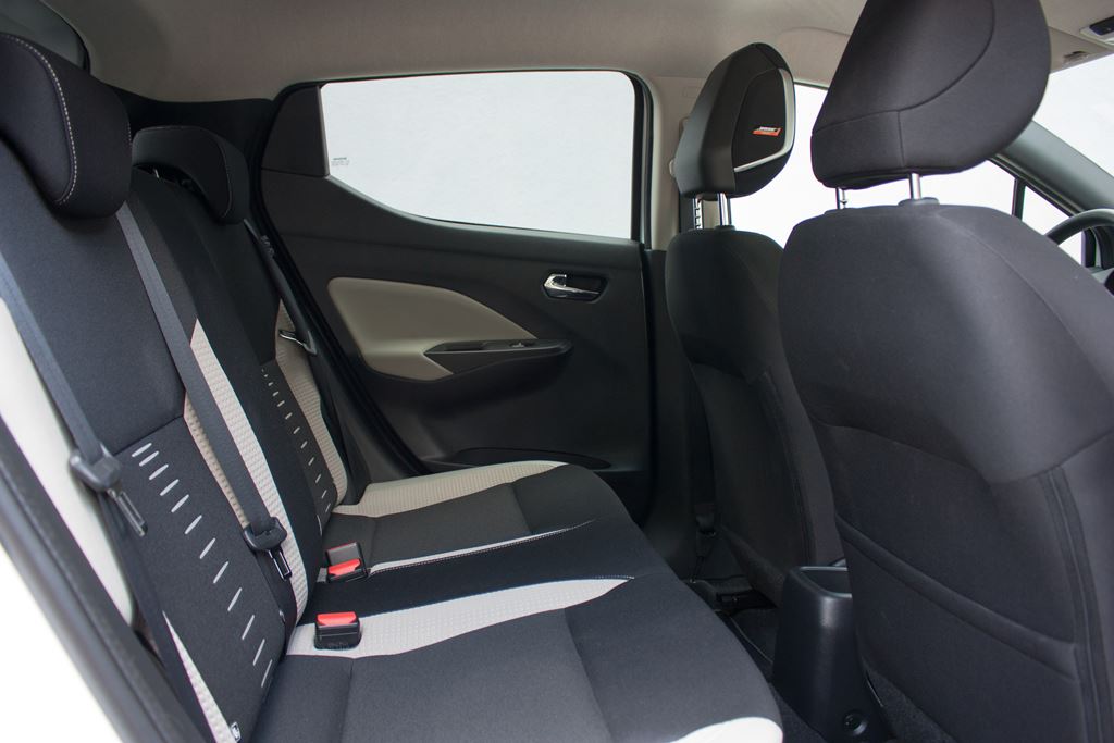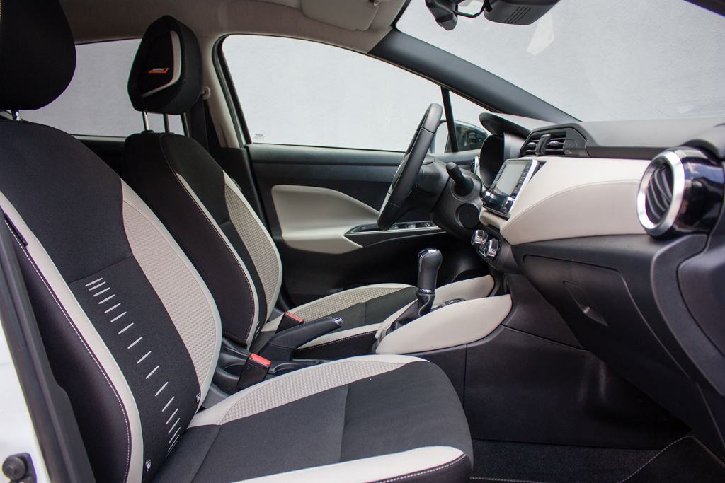 Nissan Micra to typowy przedstawiciel segmentu B co doskonale odczuwa się w kabinie pasażerskiej. Miejsca jest wystarczająco dla czterech dorosłych osób (2+2), pod warunkiem, że podróżujący nie będą zbyt wysocy, bo osoby powyżej 180 centymetrów mogą trochę narzekać. Przednie fotele są wygodne, aczkolwiek po przejechaniu blisko pięciuset kilometrów odczuwaliśmy pewne zmęczenie. Sama pozycja za kierownicą jest komfortowa, jednak widoczność do tyłu znacząco ograniczają bardzo szerokie słupki C, dlatego też warto zainwestować w kamerę cofania. Jeśli chodzi o pasażerów na tylnej kanapie to komfort podróżowania jest dokładnie taki jaki w innych przedstawicielach tego segmentu.