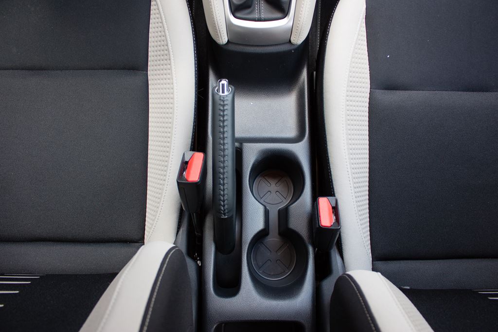 Na pochwałę zasługuje wykończenie wnętrza i jakoś wykorzystanych materiałów. W górnej części deski rozdzielczej znajdują się miękkie w dotyku materiały, natomiast nieco niżej widać dekoracyjny pas, który w przypadku naszego egzemplarza został wykończony jasną ekoskórą. Wnętrze jest naprawdę dobrze wykończone i z jasnymi akcentami prezentuje się elegancko. Wszystkie przyciski i pokrętła których dotykamy są miłe w dotyku i sprawiają wrażenie trwałych. Pozostała część tworzyw to tradycyjne twarde plastiki. Nasz egzemplarz nie został wyposażony w podłokietnik, jednak znajduje się on na liście wyposażenia opcjonalnego i można go dokupić za 709 złotych.