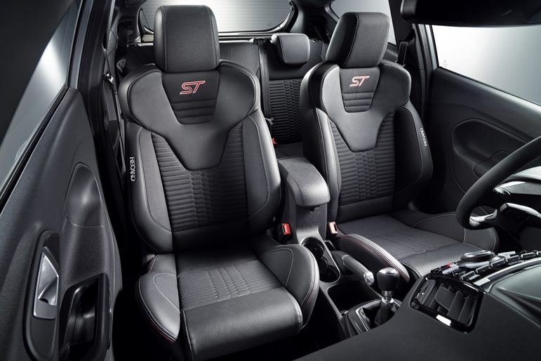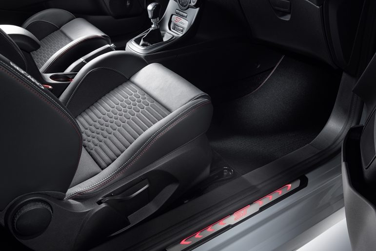 Znakomite trzymanie w czasie szybkiego pokonywania zakrętów są zasługą przednich foteli Charcoal Recaro, które w połączeniu ze świetnie leżącą w dłoniach kierownicą ST dają mnóstwo pozytywnych wrażeń z jazdy. Projektanci nie zapomnieli o sportowych dodatkach takich jak wstawki z włókna węglowego na desce rozdzielczej, aluminiowe nakładki na pedały i lewarek skrzyni biegów oraz podświetlane nakładki progowe z logo ST200.