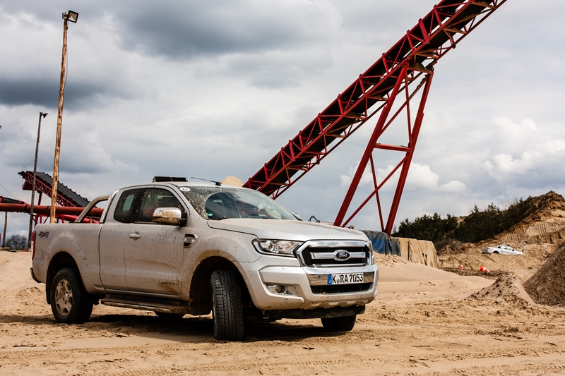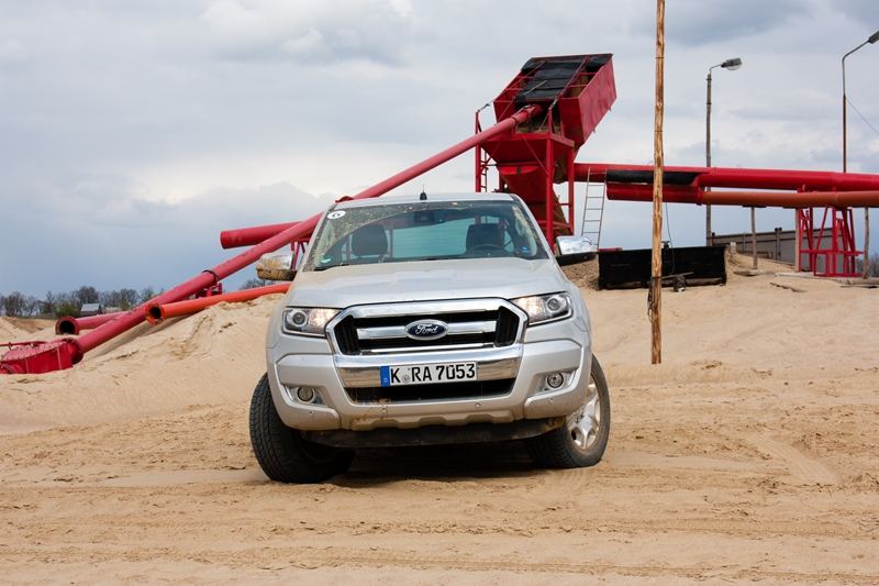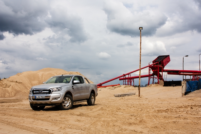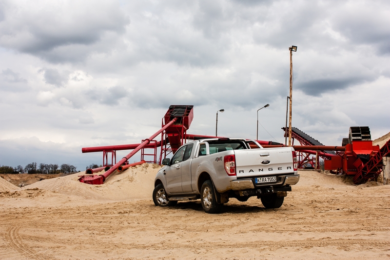 Zdecydowanie więcej emocji oraz pozytywnych wrażeń dostarczyła część odbywająca się na terenie piaskowni, gdzie przygotowano dla nas bardzo wymagającą trasę oraz samochody z silnikiem 2.2 TDCl 160 KM, manualną skrzynią biegów oraz zwykłymi drogowymi oponami. Szczerze mówiąc to byłem dość sceptycznie nastawiony do możliwości jazdy po takim terenie na normalnych oponach, ponieważ na trasie znajdowały się praktycznie pionowe zjazdy i podjazdy, bardzo grząski teren czy głębokie koleiny. Sam bałbym się wjechać samochodem w taki teren, ale organizatorzy zapewnili nam opiekę instruktorów, którzy zachęcali do śmiałej jazdy oraz pokazywali jak należy poruszać się po takim terenie. Nowy Ranger został stworzony do takich warunków i spisywał się w nich znakomicie.