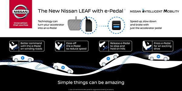 Wprowadzenie technologii e‑Pedal wyznacza kolejny etap w realizacji zobowiązania Nissana do udostępniania technologii wspomagających kierowcę w masowo produkowanych modelach. Rozwój technologii, które mają przyczynić się do poprawy bezpieczeństwa jazdy oraz zwiększyć przyjemność z jazdy, jest elementem programu inteligentnej mobilności — planów Nissana w zakresie zmiany sposobu prowadzenia pojazdów, źródła ich napędu oraz integracji ze społeczeństwem.