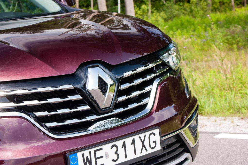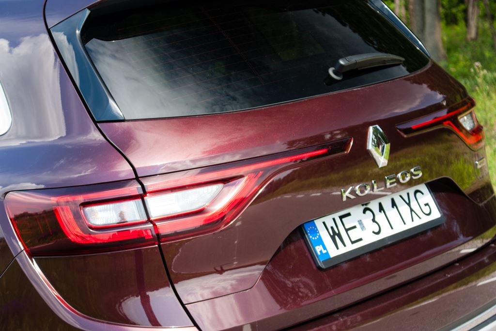 Już z daleka Renault Koleos prezentuje się elegancko i muskularnie, czyli dokładnie tak jak oczekują tego klienci zainteresowani zakupem SUV-a. Charakterystyczna dla francuskiej marki, przednia część nadwozia z ogromną atrapą chłodnicy oraz światłami w kształcie litery C, wciąż wygląda świeżo i atrakcyjnie.