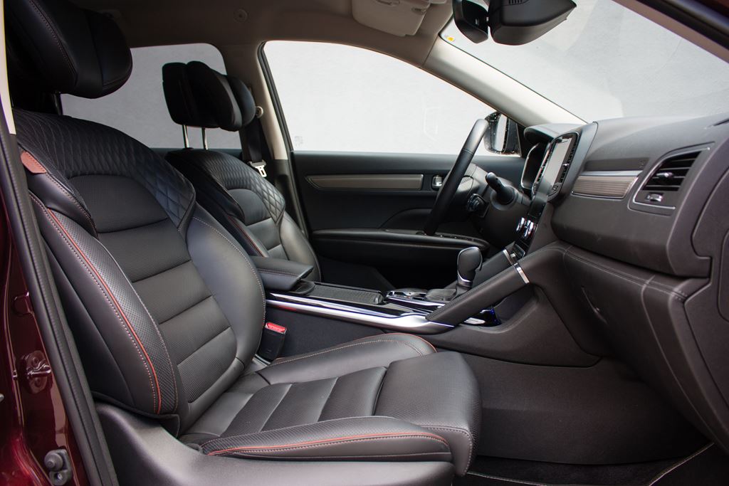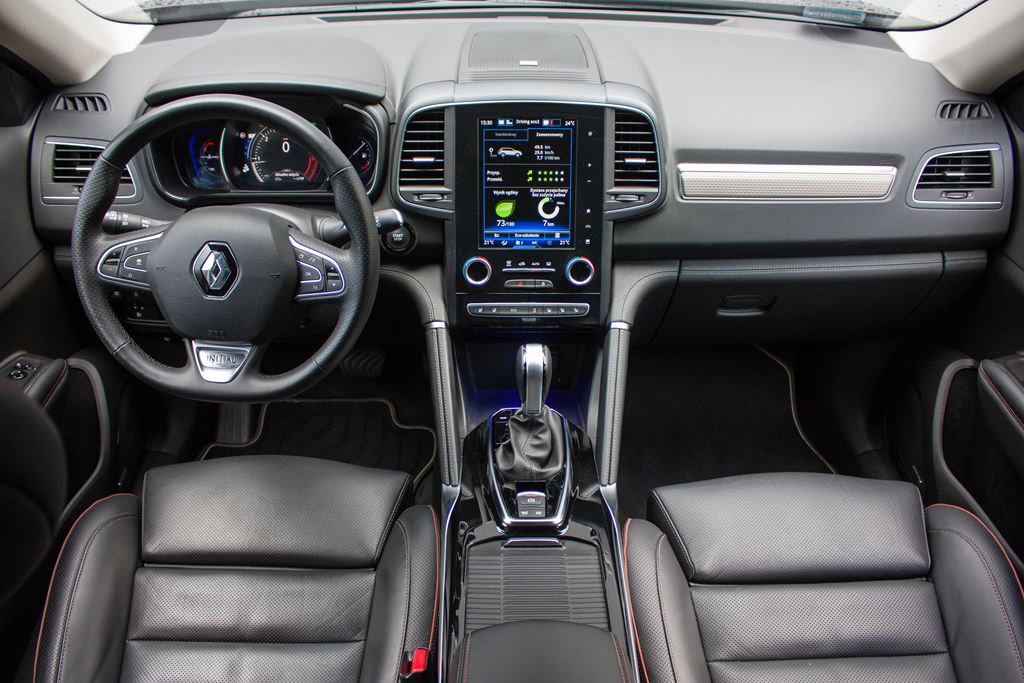 Zdecydowanie większe różnice można zauważyć we wnętrzu, które jest już bardzo bogato wyposażone i w standardzie wykończone tapicerką skórzaną Nappa. Wsiadając do wnętrza Renault Koleos właściwie od razu można poczuć się bardzo komfortowo. Może przesadą byłoby stwierdzenie, że można poczuć się w nim jak w samochodzie klasy premium, ale da się odczuć, że projektanci postarali się o to, aby klient miał poczucie dobrze wydanych pieniędzy. Wnętrze jest przestronne i bardzo dobrze wykończone, aczkolwiek nie obyło się od pewnych wpadek a gdzieniegdzie widać, że potrzebuje ono unowocześnienia. Zwłaszcza, że Renault pokazało, że ich możliwości sięgają obecnie znacznie dalej. Trudno nam zapomnieć o tym jak fanatyczne jest wnętrze nowego Renault Clio.