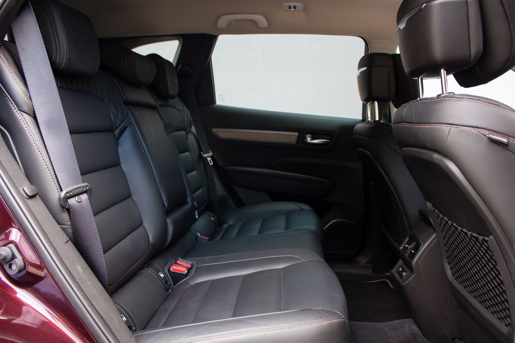 Dzięki rozstawowi osi wynoszącemu 2705 milimetrów, we wnętrzu Renault Koleos jest bardzo przestronnie i komfortowo. Przednie fotele są fantastyczne – obszerne, wygodne i znakomicie wykończone skórą Nappa. Zostały odpowiednio wyprofilowane, mają regulację podparcia odcinka lędźwiowego, bardzo dobre podparcie boczne, regulację długości siedziska i efektownie wyglądające zagłówki. W naszym egzemplarzu były one również podgrzewane i wentylowane, natomiast fotel kierowcy posiadał również funkcję masażu. Szkoda tylko, że takiej funkcji nie było w drugim fotelu. O ile z przodu tak tego nie czuć, bo kierowca i pasażer są dość szczelnie zabudowani, o tyle na tylnej kanapie miejsca jest ogrom. Przestrzeni na nogi i nad głowami jest mnóstwo, natomiast szerokość kanapy w zupełności wystarczy do tego, aby mogły podróżować tam trzy dorosłe osoby. Oczywiście dwóch dorosłych pasażerów to optymalne rozwiązanie, ponieważ mogą wówczas skorzystać ze sporych rozmiarów podłokietnika. Trzeba również zauważyć, że projektanci nie zapomnieli o udogodnieniach. Mamy dodatkowe nawiewy, porty USB oraz podgrzewane siedziska. Sterowanie podgrzewaniem nie zostało zbyt dobrze przemyślane, ponieważ znajduje się na froncie podłokietnika, więc jeśli podłokietnik jest schowany to nie da się podgrzewania włączyć.