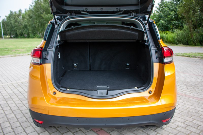 Renault Scenic nie jest tanim samochodem dlatego dziwi nas, że nie możemy wyposażyć go w elektrycznie otwieraną klapę bagażnika. Takie rozwiązanie byłoby bardzo przydatne w rodzinnym samochodzie. Na szczęście jest on bardzo pojemny. Do dyspozycji podróżujących są 572 litry, co jest naprawdę świetnym wynikiem. Z modelu Espace przejęto funkcję One Touch Folding, która umożliwia złożenie tylnych siedzeń jednym ruchem i uzyskanie płaskiej podłogi. To samo można zrobić za pośrednictwem systemu R-Link 2.