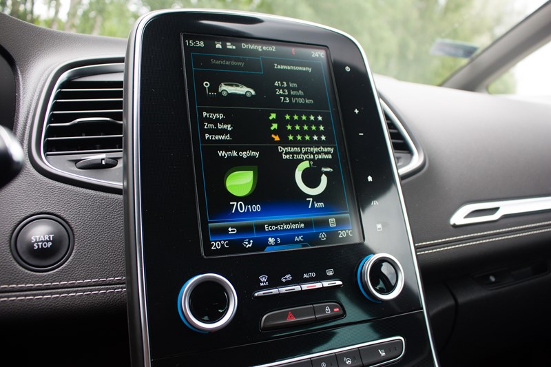 Na koniec musimy pochwalić konstruktorów za świetne hamulce. Według Renault przy prędkościach 100 km/h i 130 km/h na suchej nawierzchni droga hamowania nowego Scenica jest odpowiednio o 3 % i 5 % krótsza niż od poprzedniej generacji modelu. Na mokrej nawierzchni, przy prędkości 80 km/h, jest o 5 % krótsza.