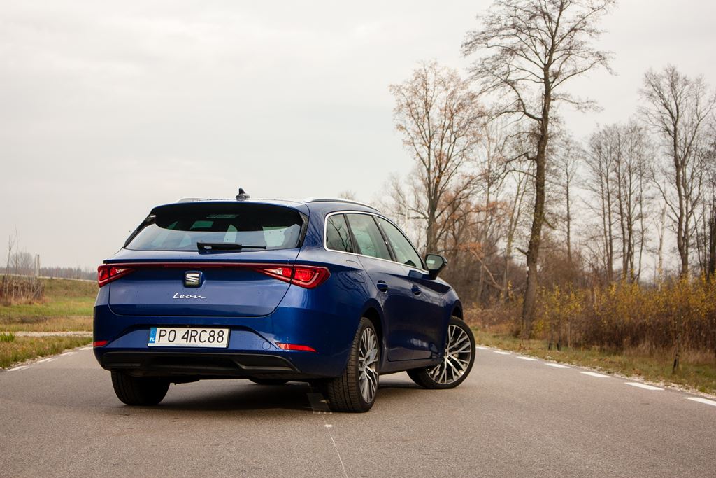 Naszego Leona wyposażono w pakiet Dynamiczny w skład którego wchodzi: Seat Drive Profile, adaptacyjne zawieszenie, progresywne wspomaganie układu kierowniczego oraz system sport HMI. Naszym zdaniem warto zapłacić za niego 3 565 złotych, ponieważ dzięki niemu Leon Sportstourer prowadzi się znakomicie, pewnie i stabilnie. Przy bardziej komfortowych nastawach zawieszenia hiszpańskie kombi jest przyjemnie komfortowe i bardzo dobrze wybiera nierówności, aczkolwiek naszym zdaniem dzieje się to trochę zbyt głośno. W najbardziej sportowych ustawieniach Leon Sportstourer pokazuje pazur i pełnię potencjału, chociaż jednostka napędowa mogłaby mieć nieco więcej wigoru to wykorzystując znakomite trzymanie i świetny układ kierowniczy możemy jeździć naprawdę bardzo agresywnie i dynamicznie. Do tego Leon Sportstourer pomimo swoich wymiarów jest zaskakująco zwarty i zwrotny. Brawo Seat! Właśnie tego oczekiwaliśmy.