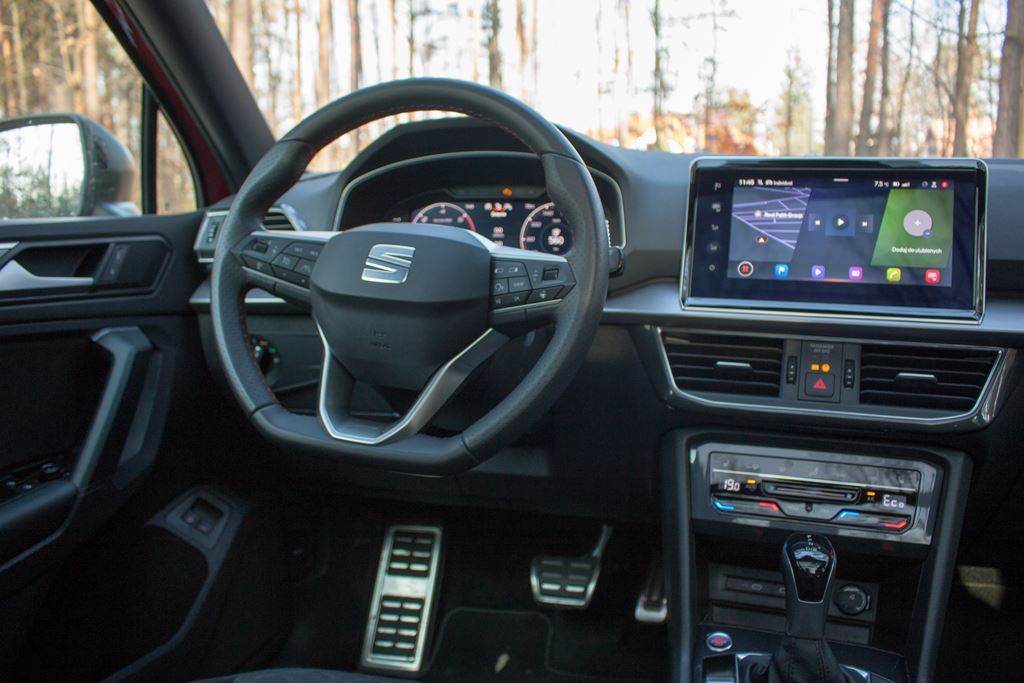 W testowanym przez nas poprzednio Seacie Tarraco nie mieliśmy jeszcze wszystkich nowinek, które obecne są od roku modelowego 2021. Najważniejszą zmianą jest nowy system info-rozrywki Navi System Plus z ekranem o wielkości 9,2 cala. Nie pierwszy raz mamy do czynienia z tym systemem i wielokrotnie omawialiśmy jego wady i zalety, dlatego jeśli jesteście nimi zainteresowani to znajdziecie je w naszych poprzednich testach. Za kierownicą pojawił się także odświeżony wirtualny kokpit z kolorowym ekranem o wielkości 10,25 cala, który posiada szerokie możliwości konfiguracji i działa naprawdę świetnie. Pojawił się także nowy panel klimatyzacji, który jest teraz w pełni dotykowy, ale akurat tego nie ma się co obawiać, bo przyciski bardzo dobrze reagują na dotyk i jakoś nikt w przypadku Tarraco nie pomyślał o przeniesieniu sterowania klimatyzacją do systemu info-rozrywki.