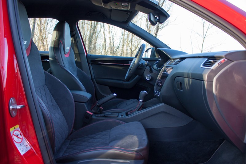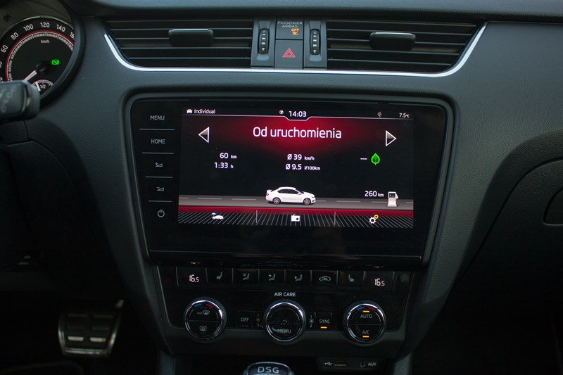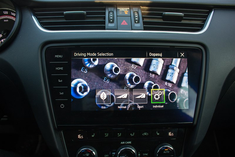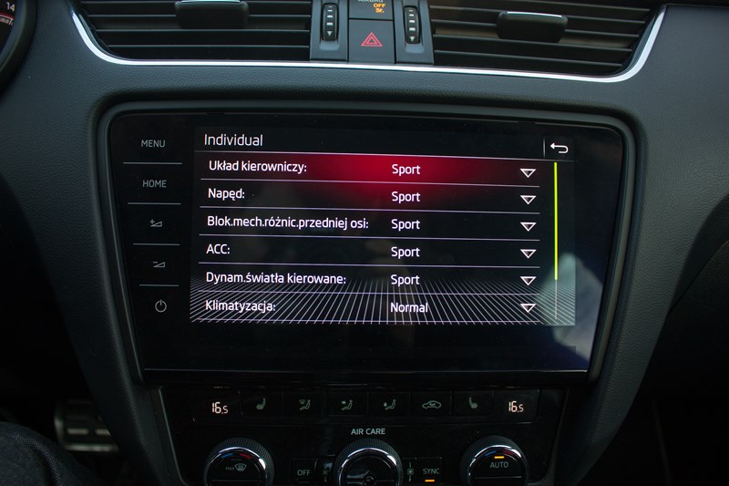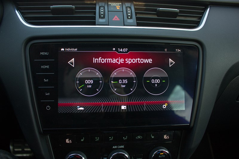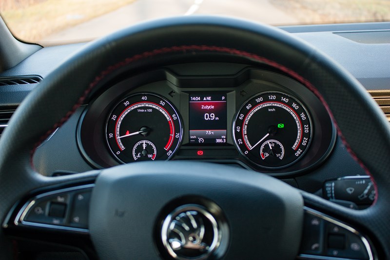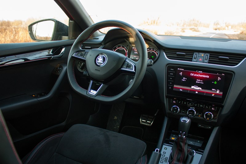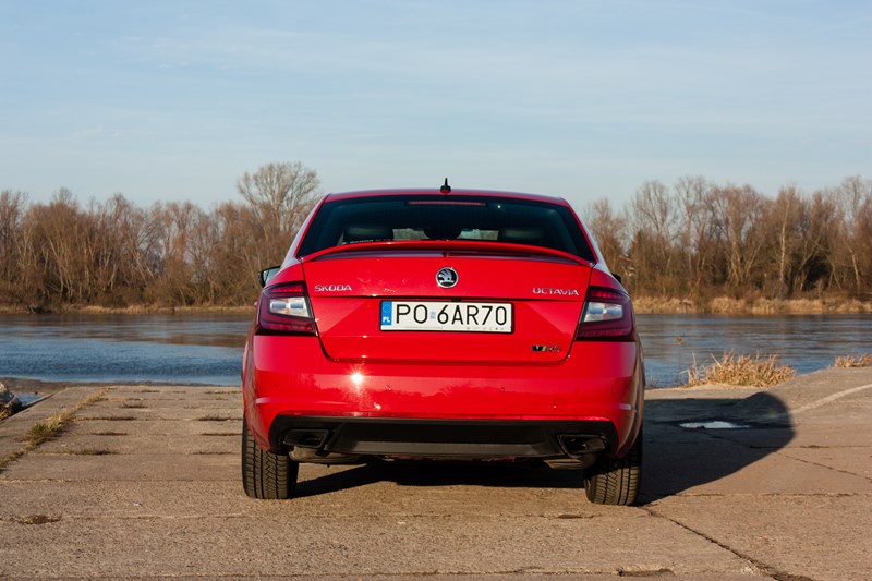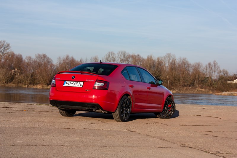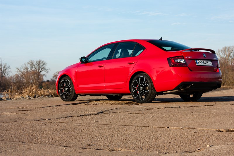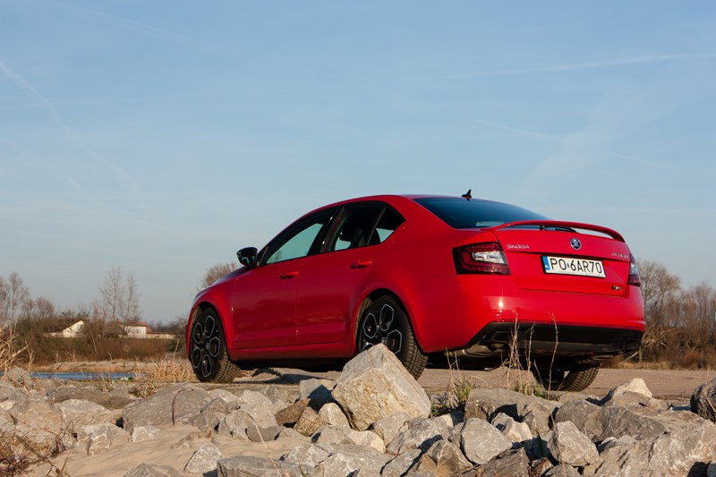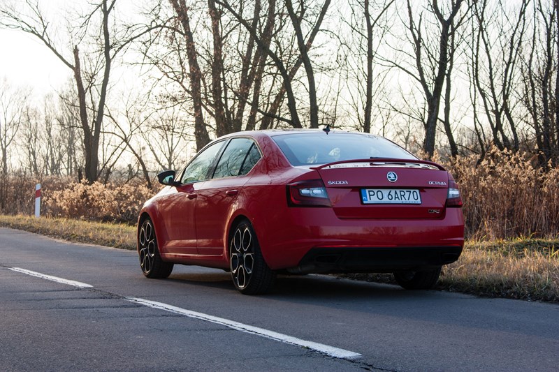 Octavia RS posiada jeszcze obniżone o 15 milimetrów zawieszenie oraz elektrohydraulicznie kontrolowaną blokadę mechanizmu różnicowego VAQ. To wszystko bardzo korzystanie wpływa na zachowanie się samochodu w zakrętach. Prowadzenie Octavii to czysta przyjemność, chociaż w trybie sport jest bardzo twardo i dokładnie czuć wszystkie niedoskonałości nawierzchni w czym nie pomagają również 19-calowe felgi. Ale sportowy samochód ma dostarczać adrenaliny, ma dawać frajdę, ma się świetnie prowadzić i trzymać drogi. Nie musi być super wygodnie, nie to jest najważniejsze. Octavia RS aż prosi kierowcę o to, aby nieco bardziej stanowczo nacisnął pedał przyspieszenia i pozwolił pokazać jej na co tak naprawdę ją stać.