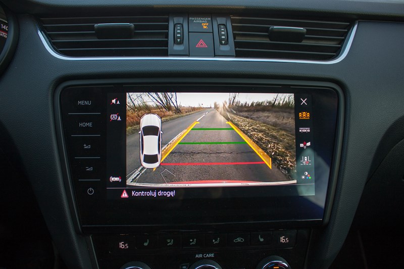 Oczywiście Octavia została wyposażona w mnóstwo elektronicznych systemów bezpieczeństwa oraz wspomagających jazdę. Na wyróżnienie zasługują trzy. Front Assist kontrolujący odległość od poprzedzającego samochodu rozszerzony o funkcję ochrony pieszych, który ostrzega kierowcę dźwiękowo i wizualnie oraz lekko hamuje. Drugim jest Rear Trafic Alert, który pomoże w momencie wyjeżdżania z miejsca parkingowego. Rozpoznaje on zbliżające się samochody i ostrzega o nich kierowcę, a jeśli ten nie zareaguje to system sam zahamuje i zapobiegnie kolizji. Trzecim jest Trailer Assist, czyli asystent parkowania z przyczepą.