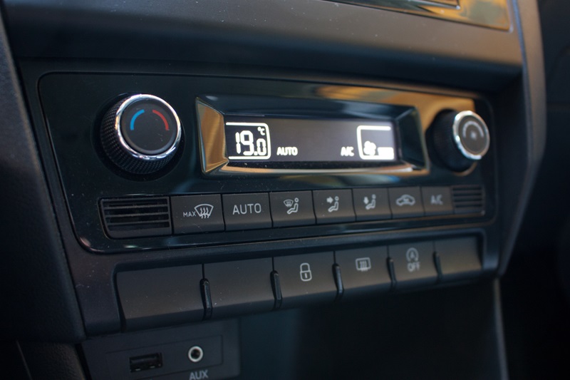 Na konsoli centralnej umieszczono 6.5” dotykowy ekran systemu multimedialnego, który działa bez najmniejszych zarzutów a jego obsługa jest naprawdę bardzo prosta. Szkoda tylko, że producent zdecydował się na obudowanie ekranu błyszczącym, czarnym plastikiem. Tuż pod nim znajdziemy panel służący do obsługi jednostrefowej automatycznej klimatyzacji do którego również nie można mieć żadnych uwag.