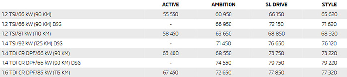 Napęd przenoszony jest na przednią oś przy pomocy pięciobiegowej manualnej skrzyni biegów. Pracuje ona naprawdę dobrze, chociaż na drogach szybkiego ruchu przydałby się jeszcze jeden bieg. Co prawda najsłabszy benzyniak może współpracować z siedmiostopniową skrzynią DSG, jednak za takie udogodnienie należy zapłacić aż 6.000 złotych. Zdecydowanie lepszym wyborem jest mocniejszy wariant silnika 1.2 TSI, który ma 20 koni mechanicznych więcej oraz współgra z sześciobiegowym manualem.