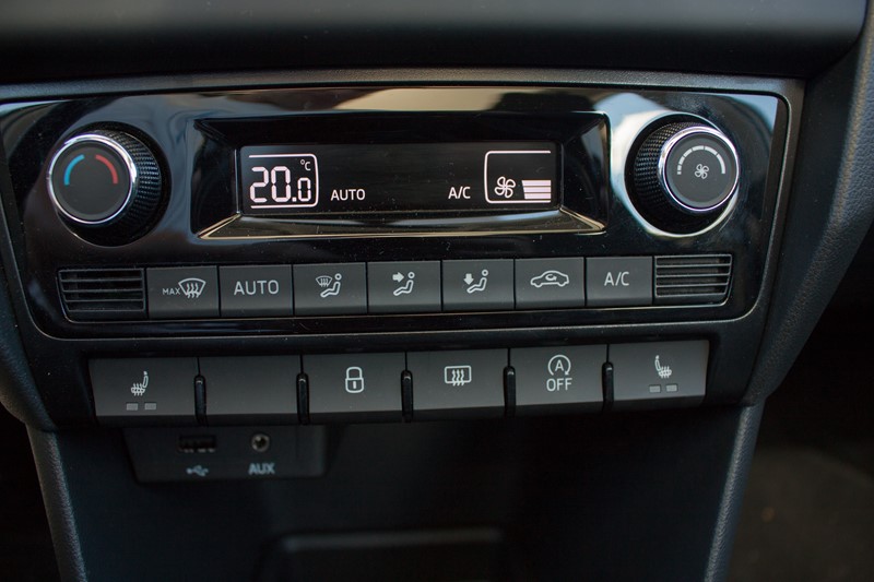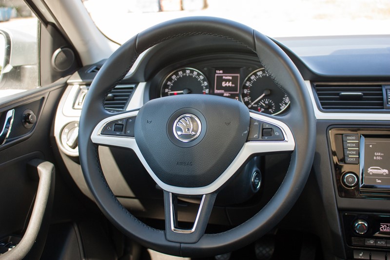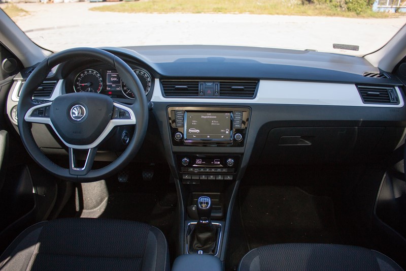 Wnętrze to klimaty dobrze znane z poprzednich generacji modeli czeskiej marki, jest ono proste, uporządkowane, a wszystkie wykorzystane materiały są dobrej jakości i odpowiednio spasowane. Ciekawym dodatkiem jest biała, błyszcząca listwa biegnąca przez całą szerokość kokpitu oraz ozdabiająca kierownicę. Dzięki temu wnętrze wydaje się jaśniejsze i lżejsze.