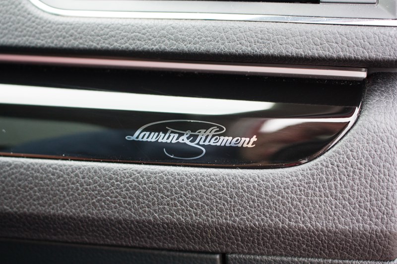 Wszystkie materiały jakie wykorzystano do wykończenia wnętrza są wysokiej jakości i zostały odpowiednio spasowane. Nie ma mowy o jakiś twardych elementach czy niepokojących odgłosach. Listwy dekoracyjne zostały pokryte czarnym lakierem fortepianowym i znajduje się na nich dyskretny napis „Laurin & Klement”. Takie samo oznaczenie znajdziemy także na aluminiowych listwach progowych oraz oparciach foteli i kanapy. Naszym zdaniem we wnętrzu było zdecydowanie zbyt dużo elementów wykończonych czarnym, błyszczącym lakierem. Nie jest to ani ładne ani praktyczne.