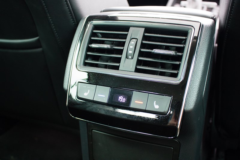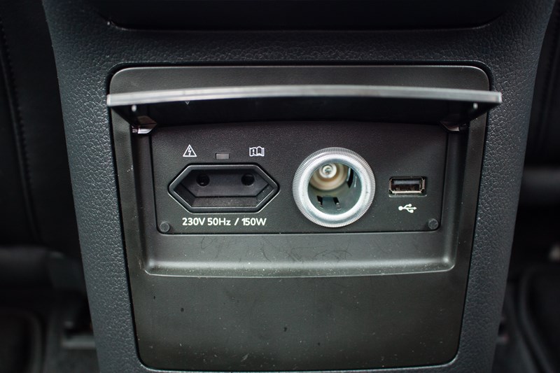 Na tylnej kanapie bez najmniejszego problemu znajdzie się miejsce dla trzech dorosłych osób, którzy mają sporo miejsca nad głowami i mnóstwo przestrzeni na nogi. Na środkowej konsoli do użytku pasażerów oddano panel sterowania automatyczną klimatyzacją oraz podgrzewaniem kanapy. Jest także port USB oraz gniazdko 230 V. Jedyne na co można narzekać to brak odpowiedniego trzymania bocznego, które szczególnie w naszej wersji byłoby bardzo przydatne.