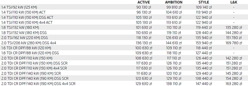 | Skoda Superb 2.0 TSI 280 KM – dane techniczne: | |