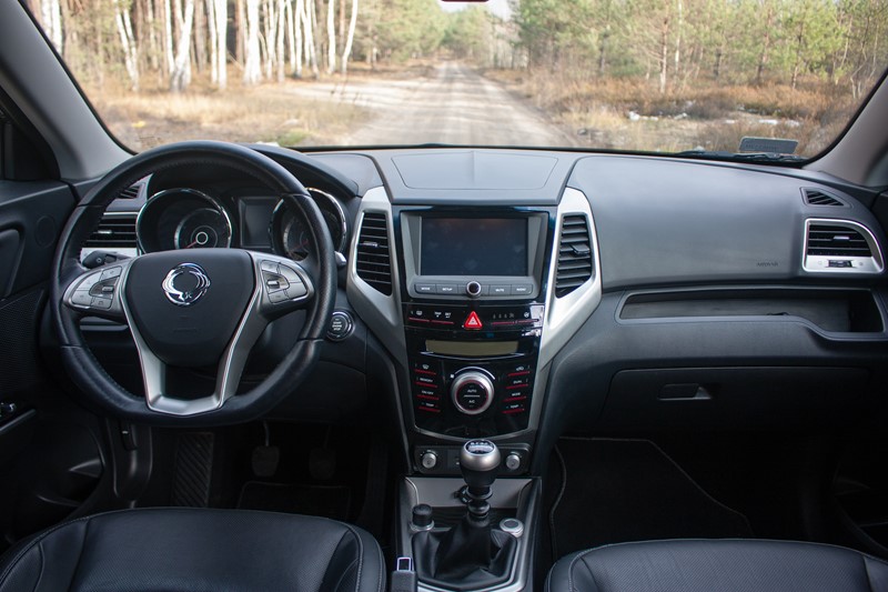 Jeśli porównamy wnętrze Tivoli do poprzednich modeli koreańskiego koncernu to zauważymy wiele korzystnych zmian w stylistyce oraz ergonomii. Miałem okazję jeździć starymi Ssangyong-ami, dlatego trudno nie docenić mi ogromu pracy jaki został włożony w zaprojektowanie wnętrza Tivoli. Materiały z jakich wykonano wnętrze są różnej jakości. Z jednej strony znajdziemy miękkie i miłe w dotyku plastiki, skórzaną tapicerkę i skórzane wykończenie elementów wnętrza, natomiast z drugiej strony dostrzeżemy elementy o zdecydowanie gorszej jakości. Na szczęście wszystko zostało odpowiednio spasowane.