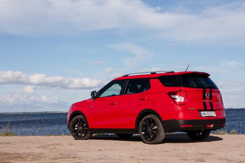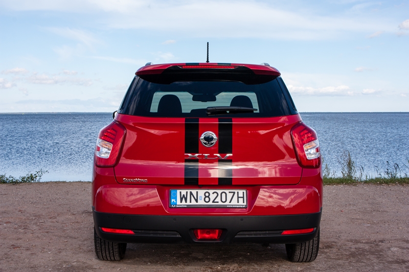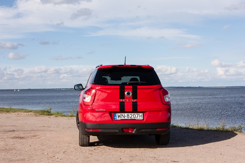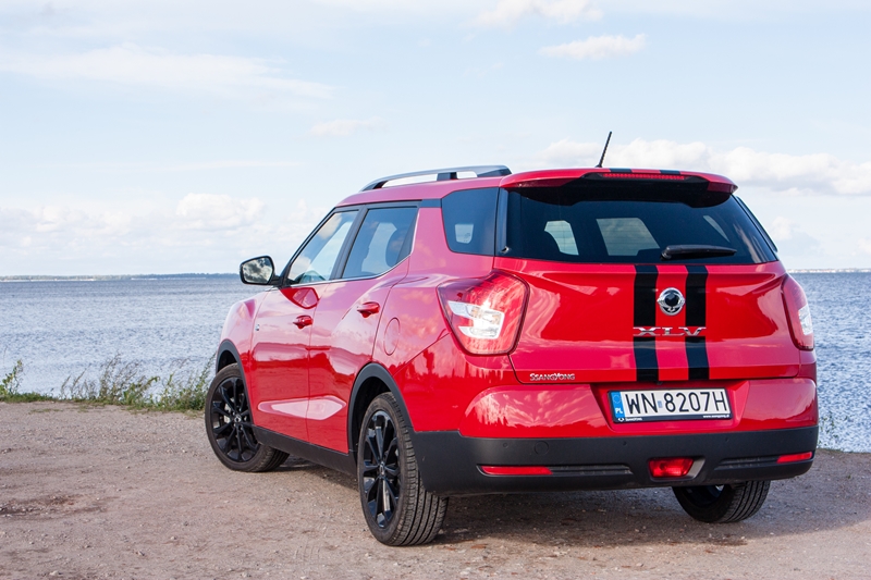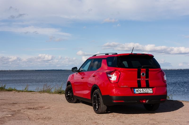Jeśli chodzi o stylistykę to zmiany w przedniej części ograniczyły się do dodania ciekawie wyglądającego przedniego pasa imitującego karbon łączącego światła przeciwmgłowe. Większe zmiany zauważymy w tylnej części nadwozia, która moim zdaniem prezentuje się zdecydowanie lepiej i bardziej proporcjonalnie niż w przypadku Tivoli. Dodatkowo czerwony lakier testowanego egzemplarza został skontrastowany z czarnymi błyszczącymi felgami i dwoma czarnymi pasami biegnącymi przez środek nadwozia. Całość prezentuje się naprawdę atrakcyjnie i niecodziennie.