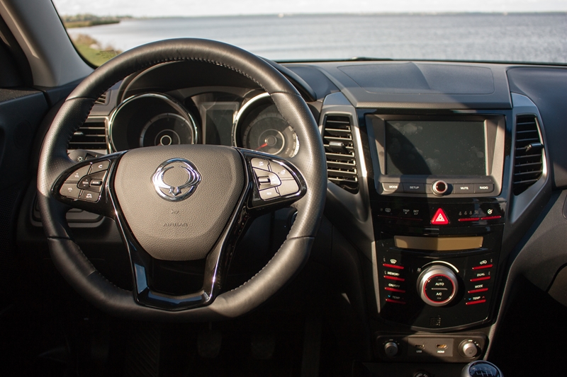 Na dużą pochwałę zasługuje układ i przejrzystość zegarów na desce rozdzielczej, które dodatkowo umożliwiają wybranie kierowcy kolorystyki podświetlenia. Podobnie jak w przypadku Tivoli od wersji wyposażenia zależy wizualizacja i ilość informacji wyświetlanych na ekranie komputera pokładowego znajdującego się pomiędzy obrotomierzem a prędkościomierzem. Zastrzeżenia można mieć do samych przycisków umożliwiających obsługę komputera pokładowego, które zostały umieszczone na środkowym tunelu. Dużo lepszym rozwiązaniem byłoby umieszczenie przycisków na sportowo wyglądającej kierownicy, która niestety regulowana jest tylko w jednej płaszczyźnie. To coraz rzadziej spotykane rozwiązanie, a w samochodzie, który kosztuje sto tysięcy złotych jest to moim zdaniem nie do zaakceptowania.