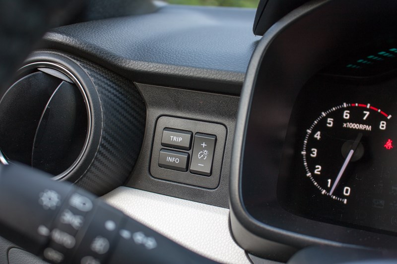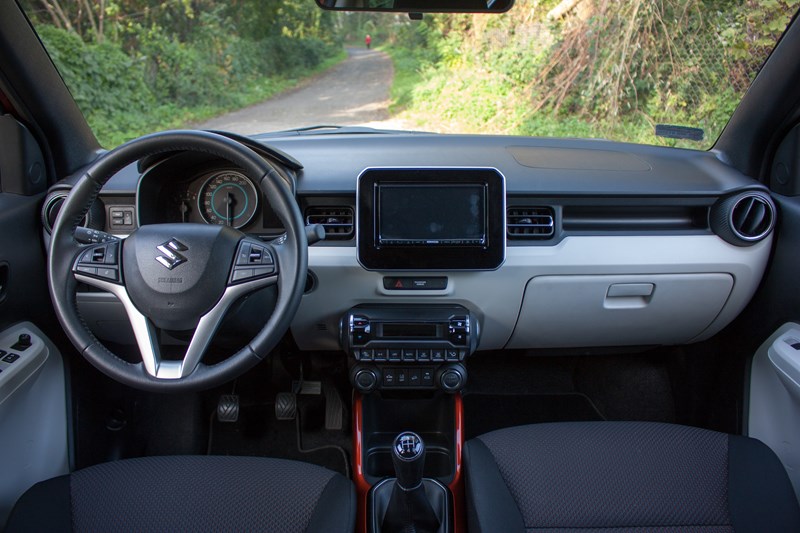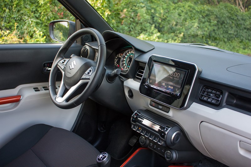 Na szczęście zrezygnowano ze słynnych „patyczków” służących do obsługi komputera pokładowego, zamiast nich zamontowano niewielki panel po lewej stronie zegarów oraz przycisk „Info” na kierownicy. Zestaw zegarów wygląda naprawdę fajnie. Nad nimi umieszczono dodatkowe oświetlenie, które jest kolejnym „smaczkiem” we wnętrzu Ignisa. Jeśli mielibyśmy cokolwiek zmienić to ekran komputera pokładowego, który obecnie jest monochromatyczny, a mógłby być kolorowy. Nie byłby to duży koszt, a wizualny efekt mógłby być rewelacyjny.